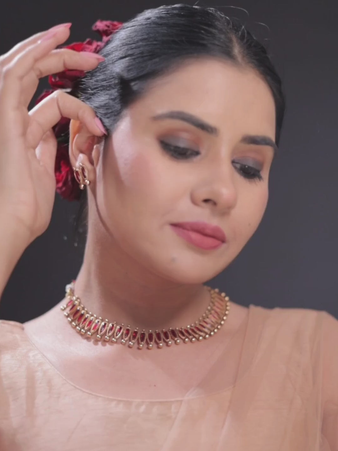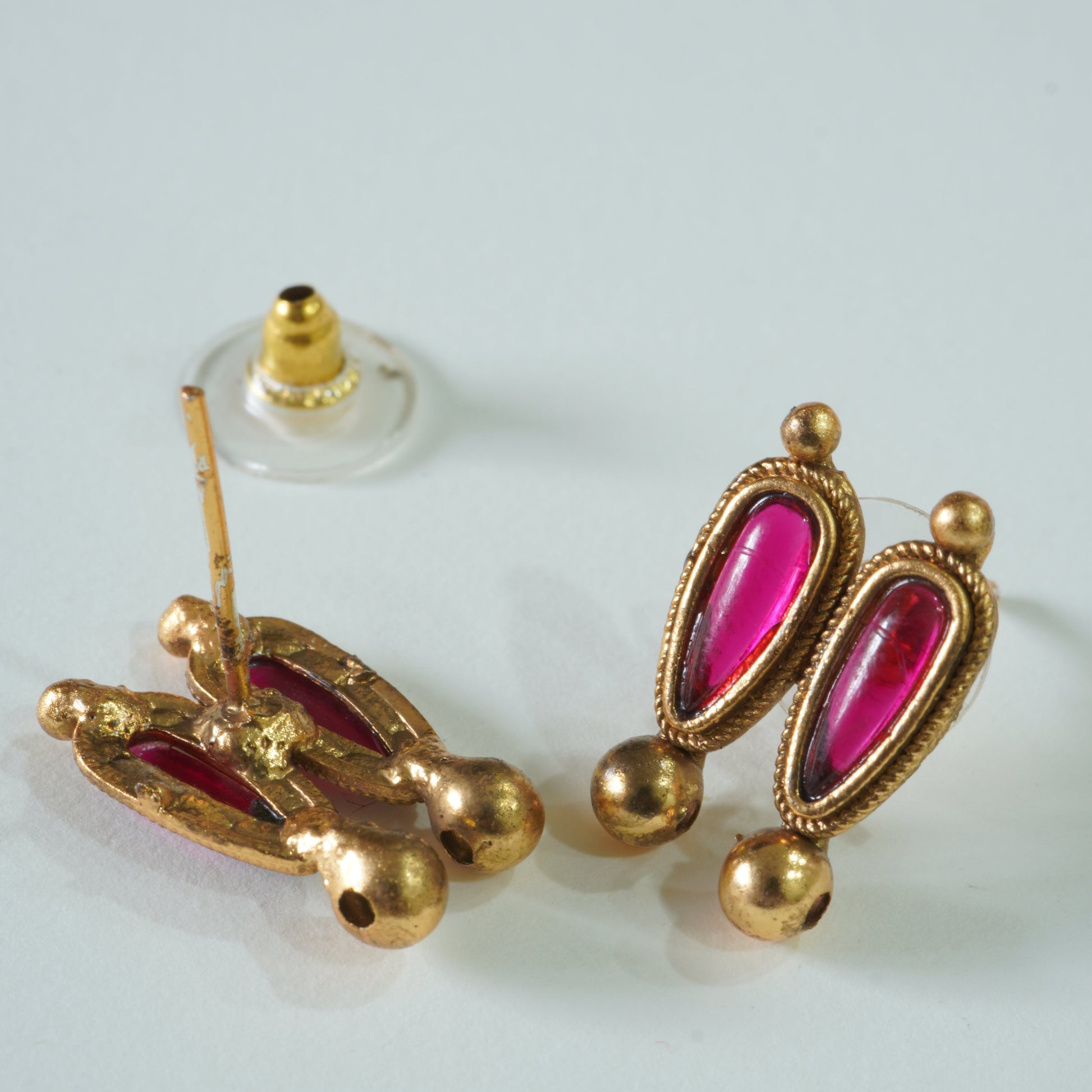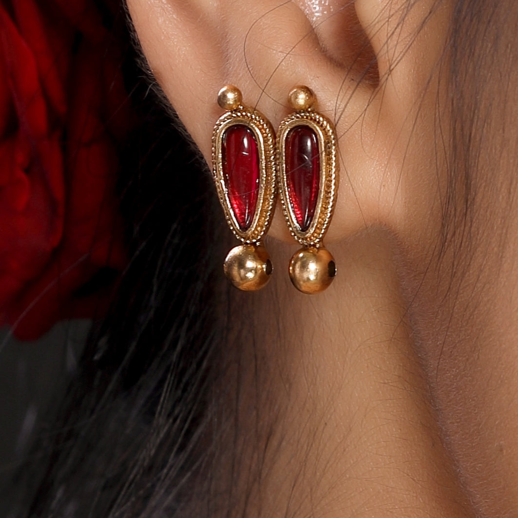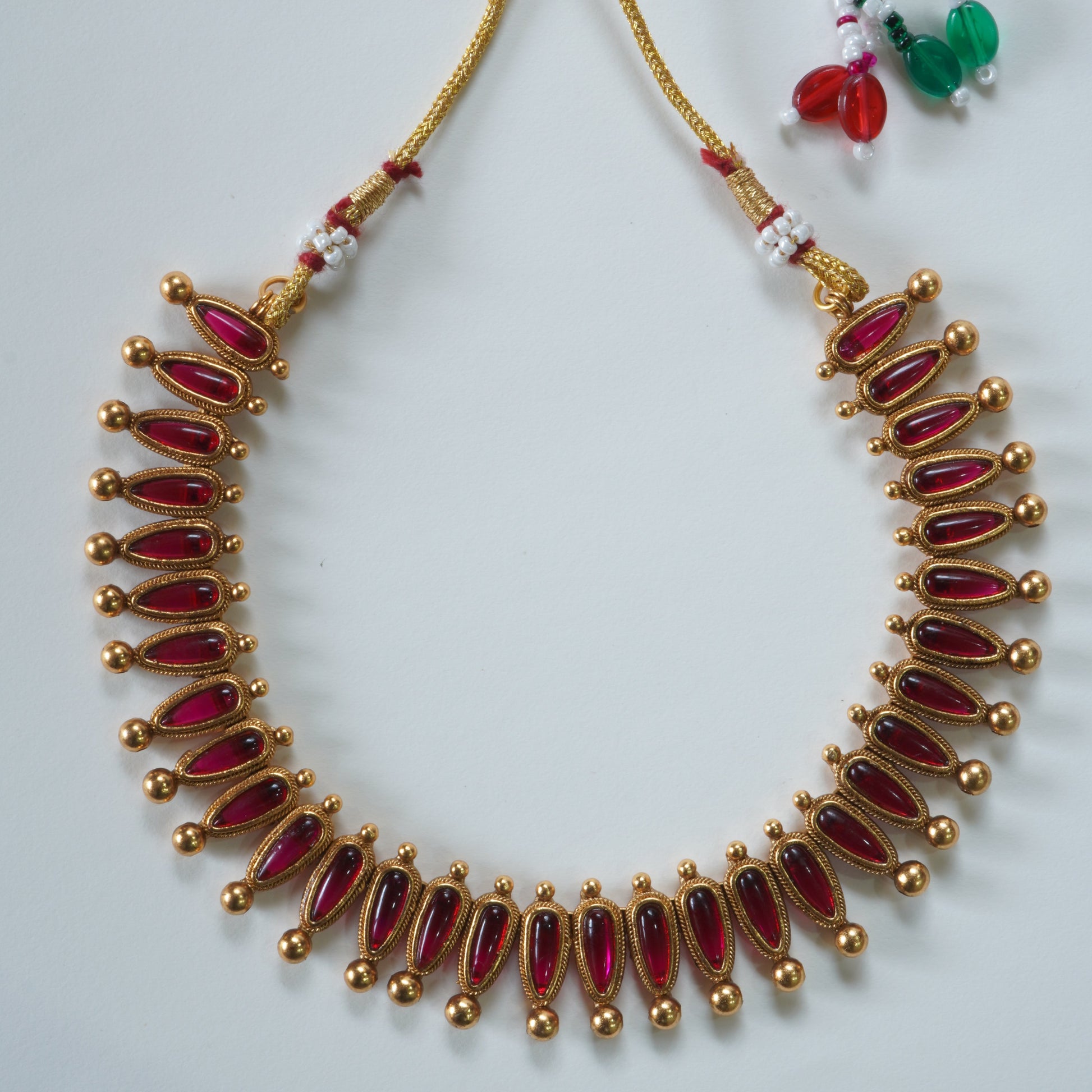Evergreen Antique Matte Gold Conical Red Kemp Stone Necklace Set